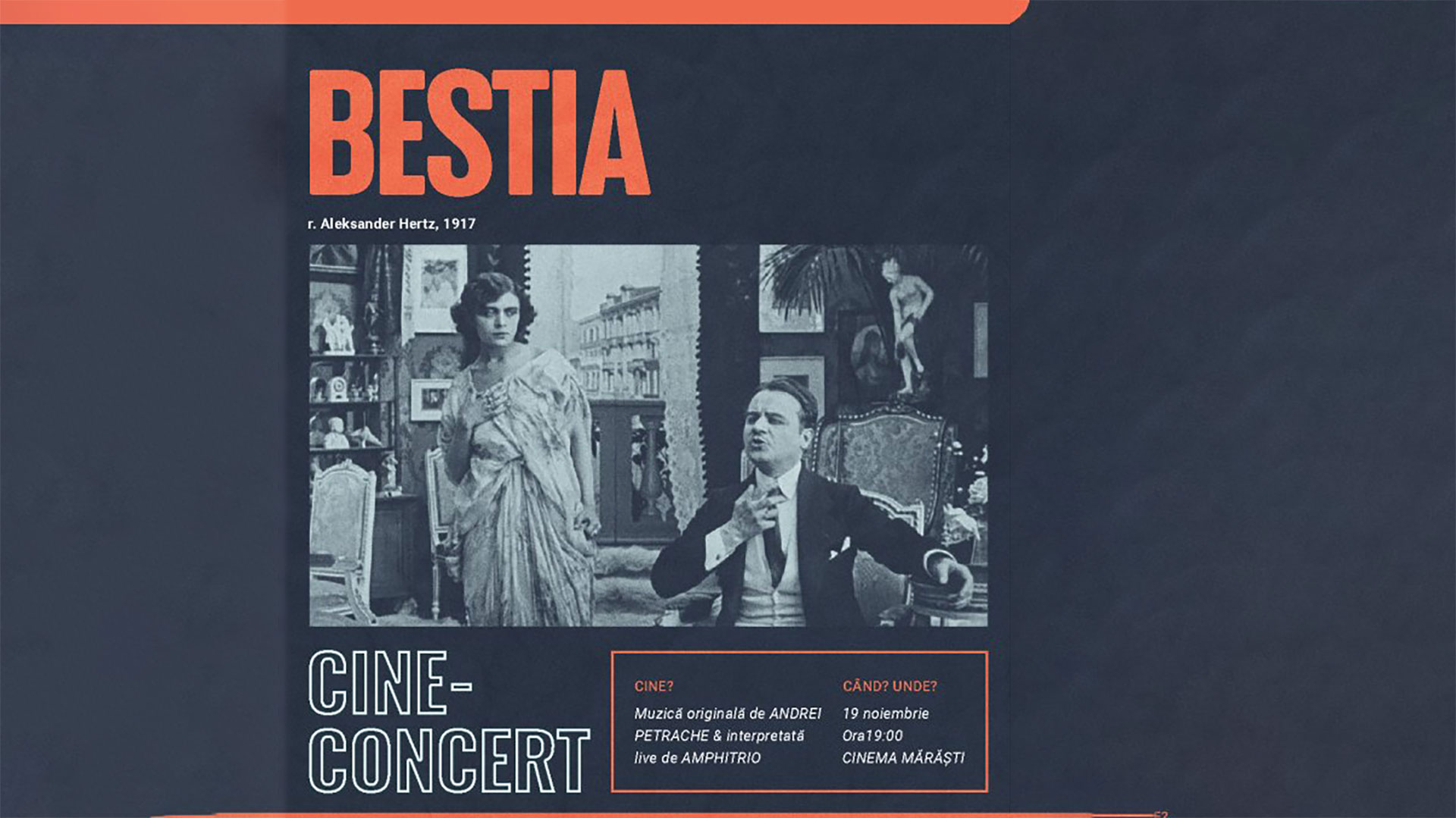 Seria de cineconcerte KADRU, lansată în această toamnă de Primăria municipiului Cluj-Napoca prin Centrul de Cultură Urbană și curatoriată de Cirkular, continuă cu un nou eveniment cultural de marcă: proiecția filmului mut „Bestia” (1917), acompaniat live de trio-ul de jazz contemporan Amphitrio.