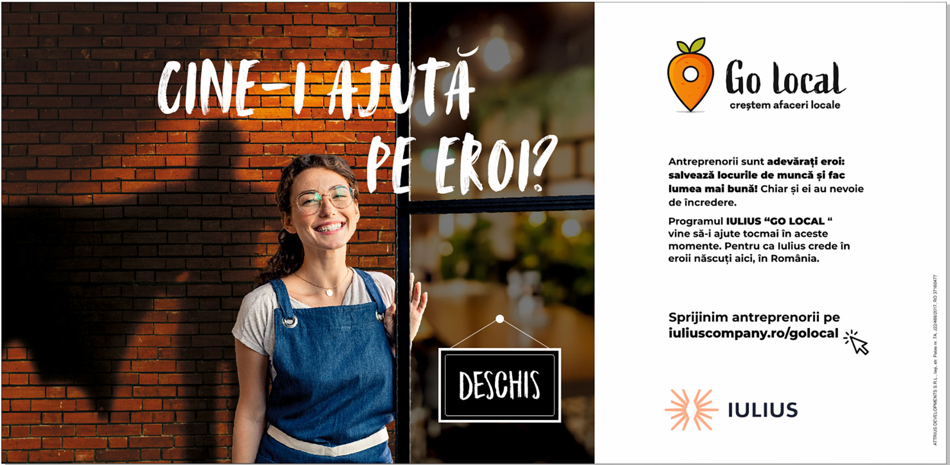 IULIUS dă startul unui program pentru susținerea antreprenorilor locali, a celor care fac parte din cotidianul nostru prin afacerile lor. Înscrierile se fac pe www.iuliuscompany.ro/golocal, iar antreprenorii interesați vor trece printr-un proces de selecție. Business-urile locale din programul Go Local vor beneficia de scutiri temporare de la plata chiriei pentru prezența în cadrul ansamblurilor mixed-use de regenerare urbană Palas Iași și Iulius Town Timișoara sau rețelei Iulius Mall din Iași, Cluj-Napoca și Suceava, dar și de pachete personalizate de promovare gratuite.