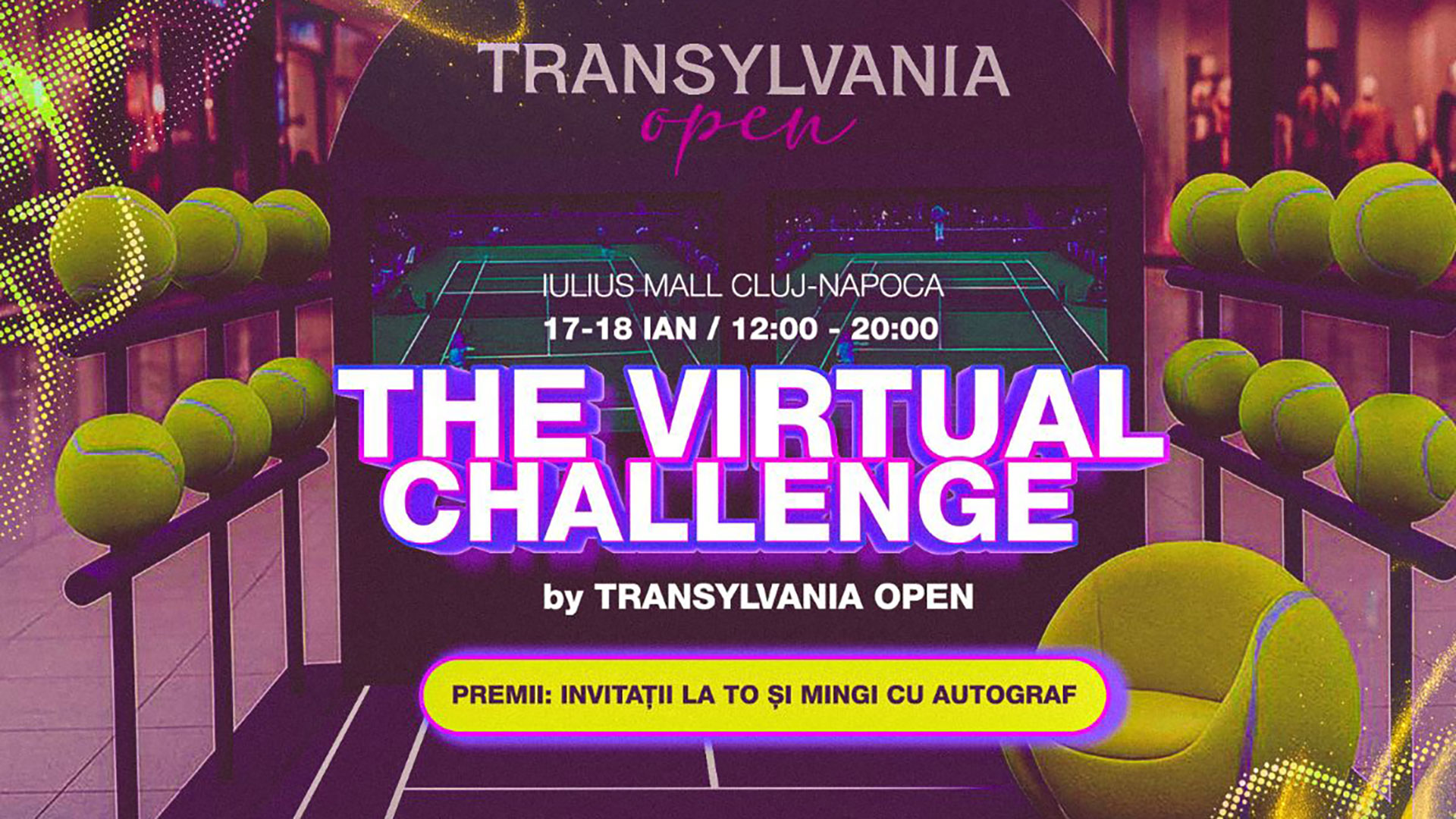 Timp de două zile, în perioada 17 – 18 ianuarie 2026, la Iulius Mall Cluj are loc Transylvania Open Virtual Challenge, unde poți câștiga o invitație dublă la marele turneu. În fiecare zi, din oră în oră, se vor desfășura mini-competiții, iar câștigătorii vor pleca acasă cu invitații duble pentru luni, 2 februarie, la Transylvania Open. În plus, toți participanții vor primi mingi semnate de jucătoarele participante la edițiile anterioare ale turneului.